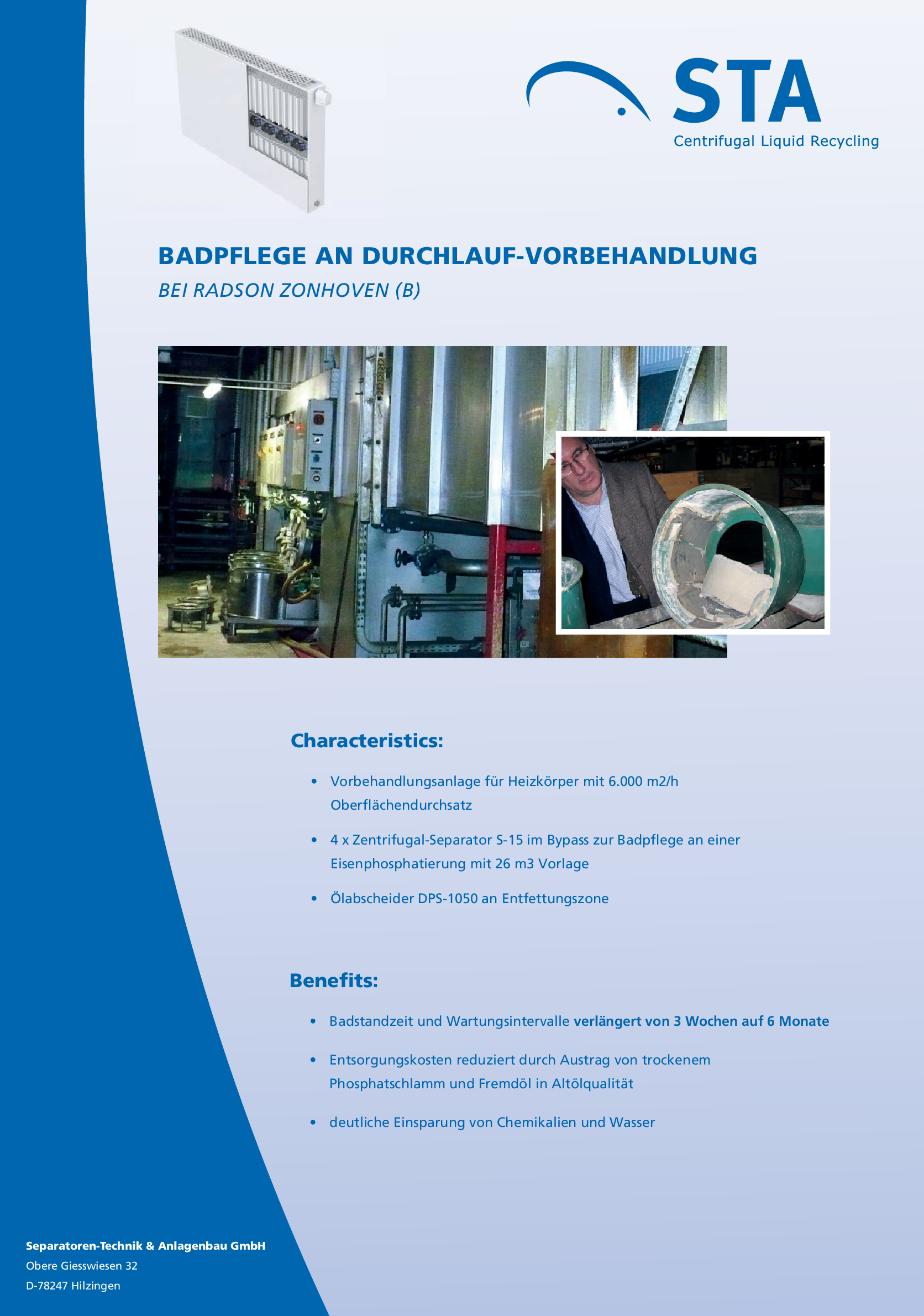 Der Einsatz von Zentrifugal-Separatoren zur Reinigung von Vorbehandlungsbädern bietet zahlreiche Vorteile: